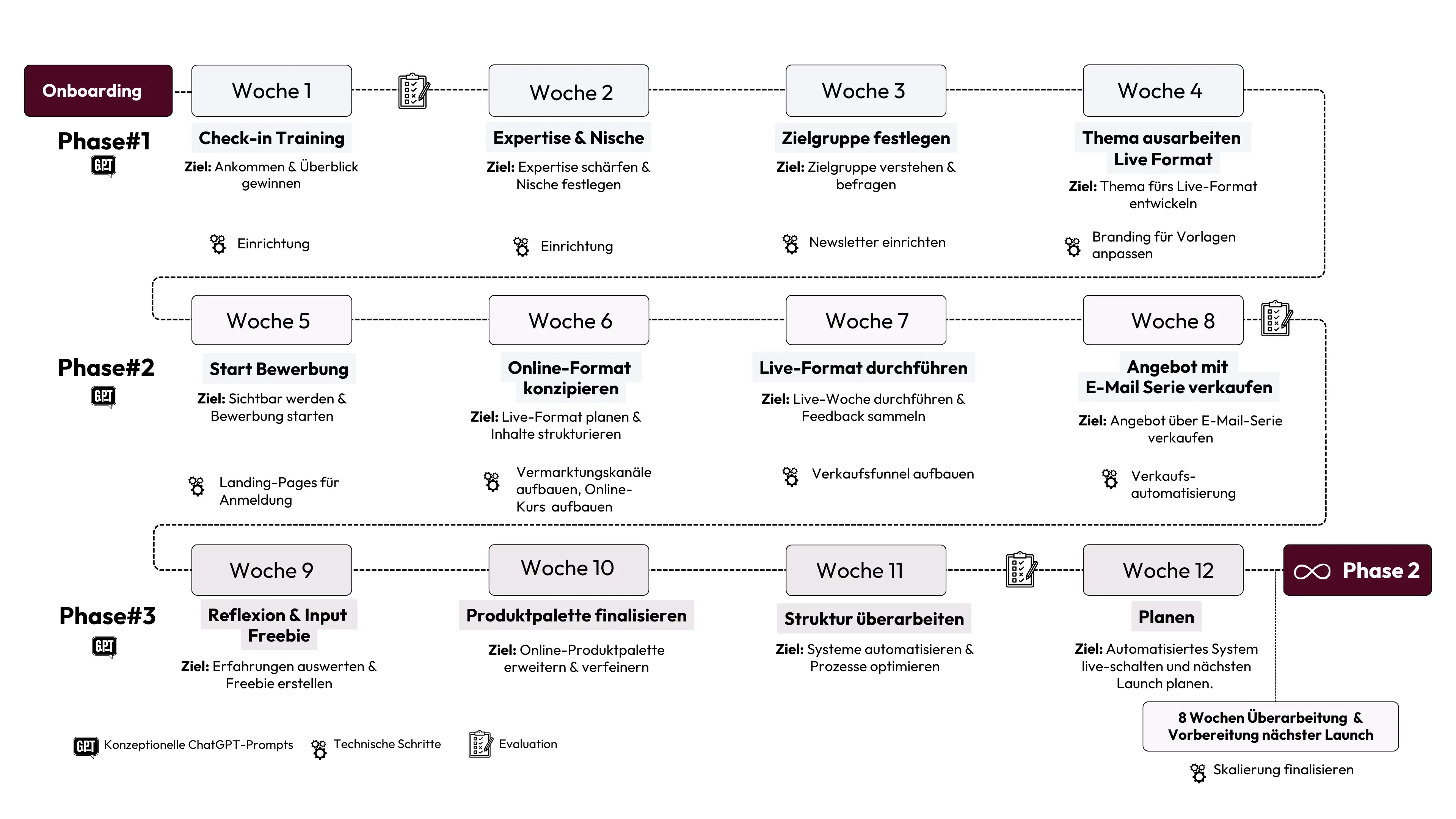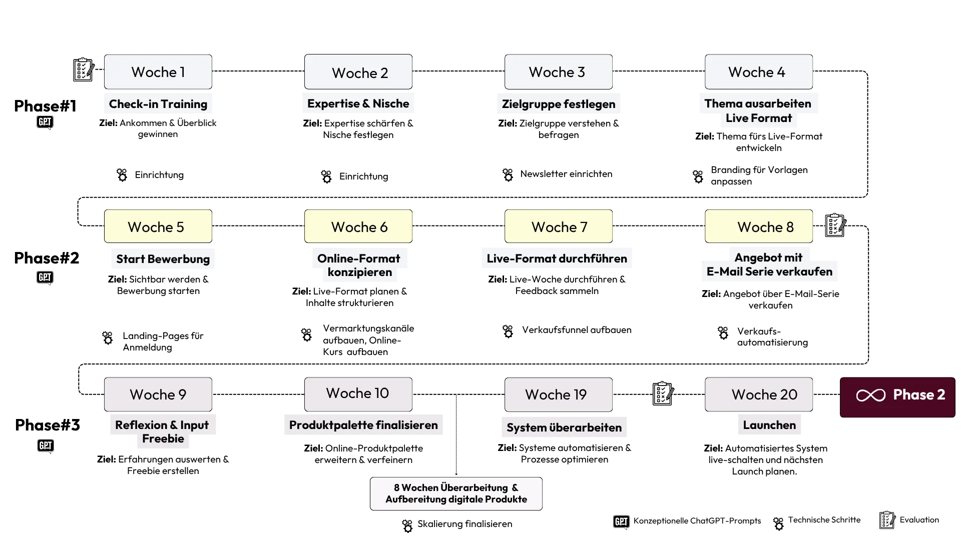 Chat-GPT-Prompts für alle Phasen des Programms, die dir helfen, schnell Entscheidungen zu treffen und Ergebnisse zu bekommen.